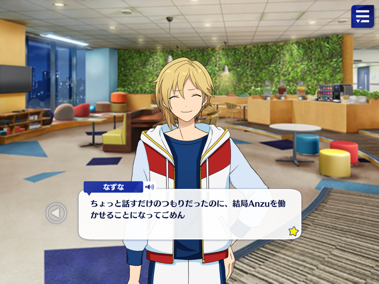 Анзу, если у тебя есть напиток, почему бы тебе не присесть?