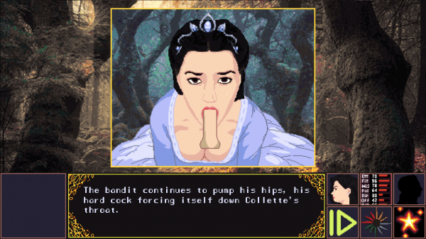 Naked Ambition features a pixel art style inspired by mind 90's PC games as well as a unique semi-randomized gameplay style. What order events happen in and what decisions the Princess makes changes every game.