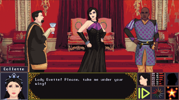 The king is dead leaving leaving a power vacuum in the kingdom. Help guide the Princess i her quest to get herself upon the throne. You'll have to manage her classes and personality as she tries to gain support. But be careful, there's dangers lurking everywhere and the Princess has a mind of her own.