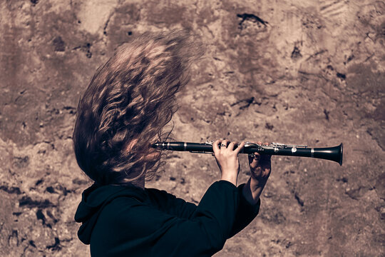 Naked Girl Playing The Clarinet