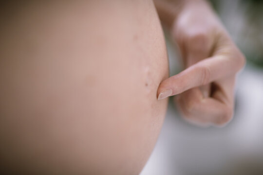 Naked Girl With Finger On Belly Button