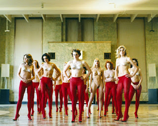 You try standing in this position . . . for this long . . . on a rotating platform . . . without moving. Makes you appreciate art models! The first part of the video shows the little adjustments that are made to the pose while the director tries to get the pose the way she wants it. Then Ana has to hold the pose through a spin. At the end of the video--this may be the most interesting part--she works out the stiffness from holding the pose.