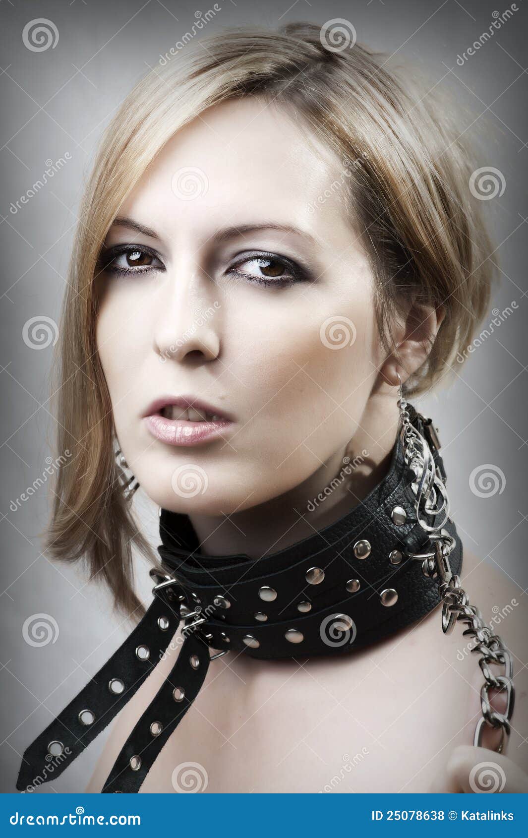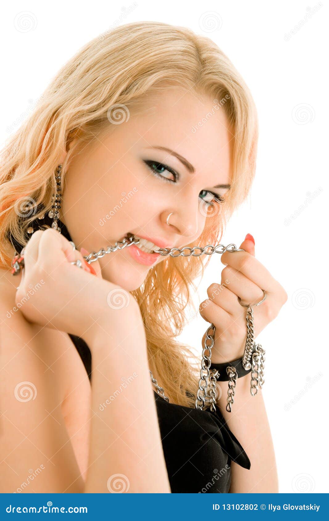 Blonde woman with chain. Young blonde woman with chain