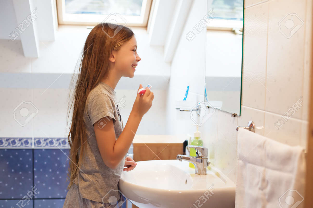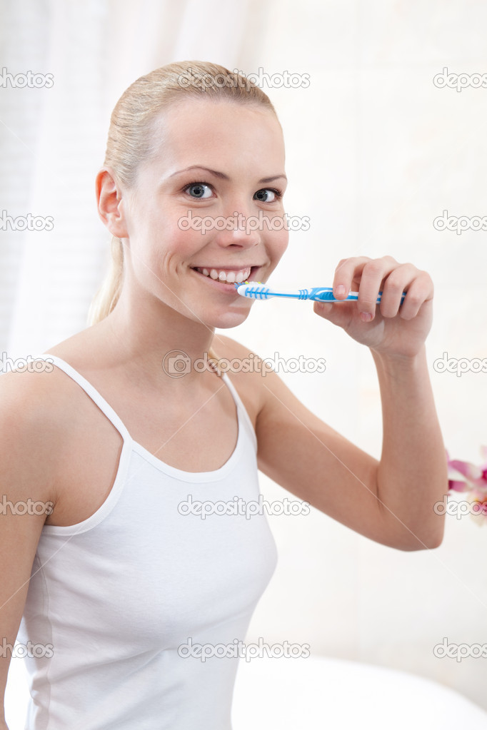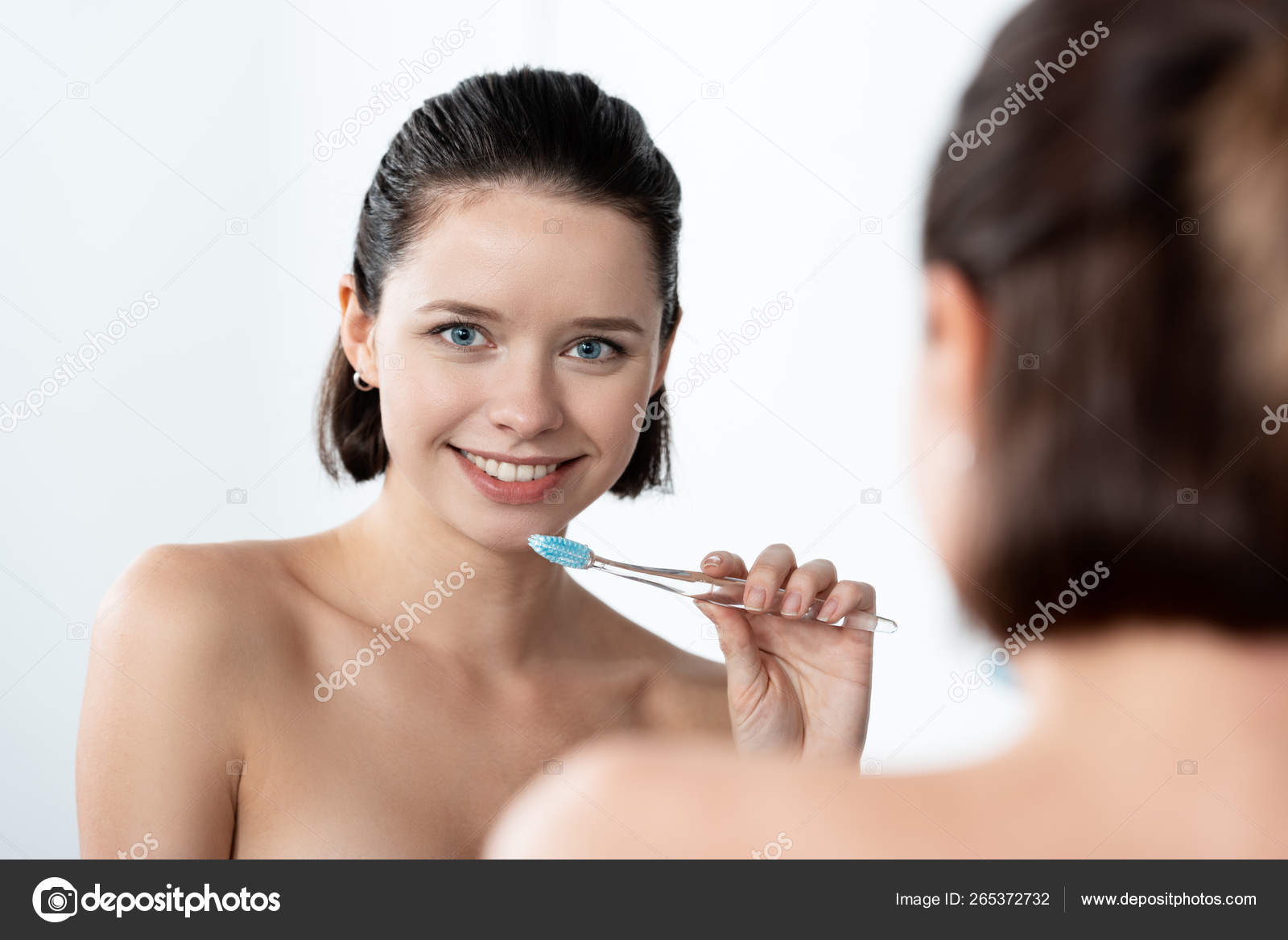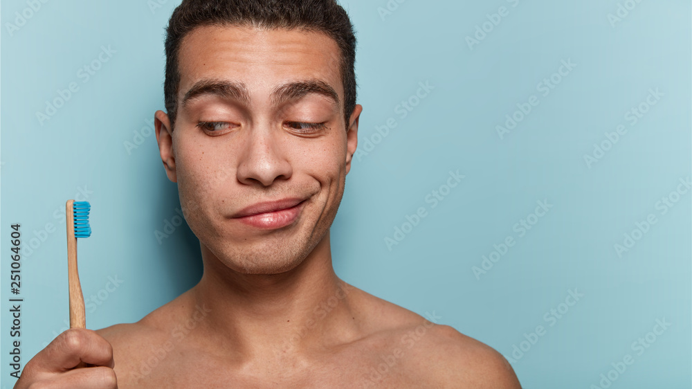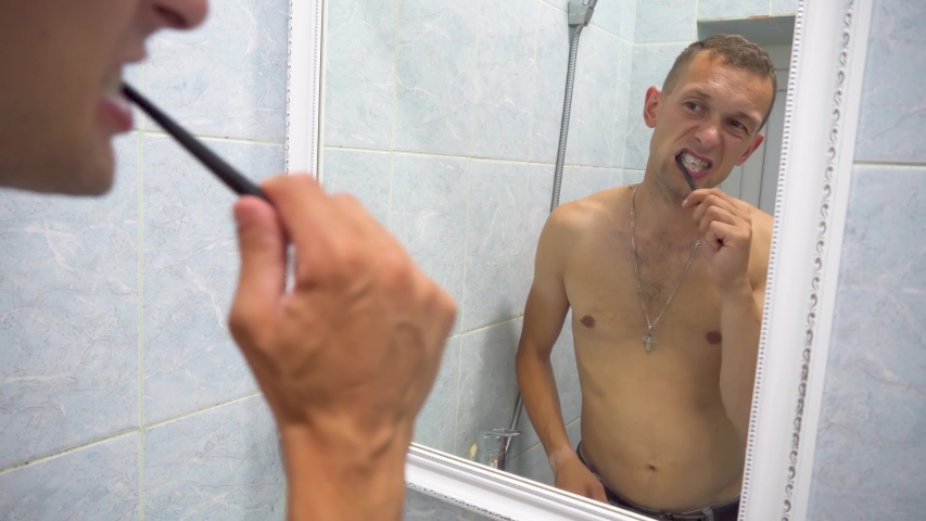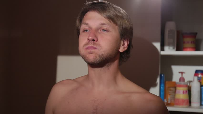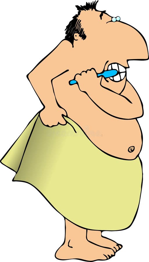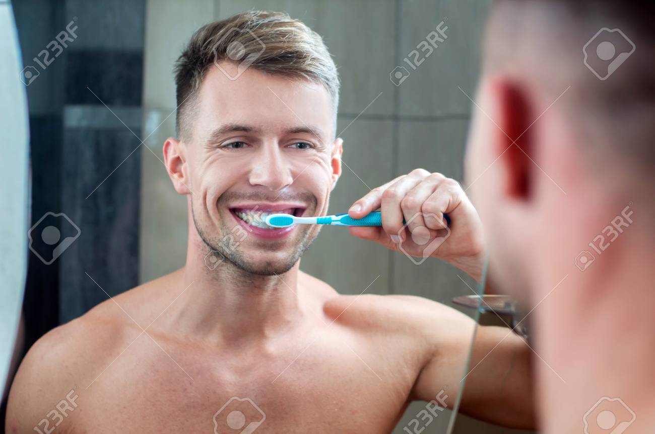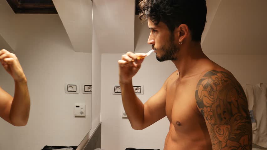 Naked at bathroom brushing teeth