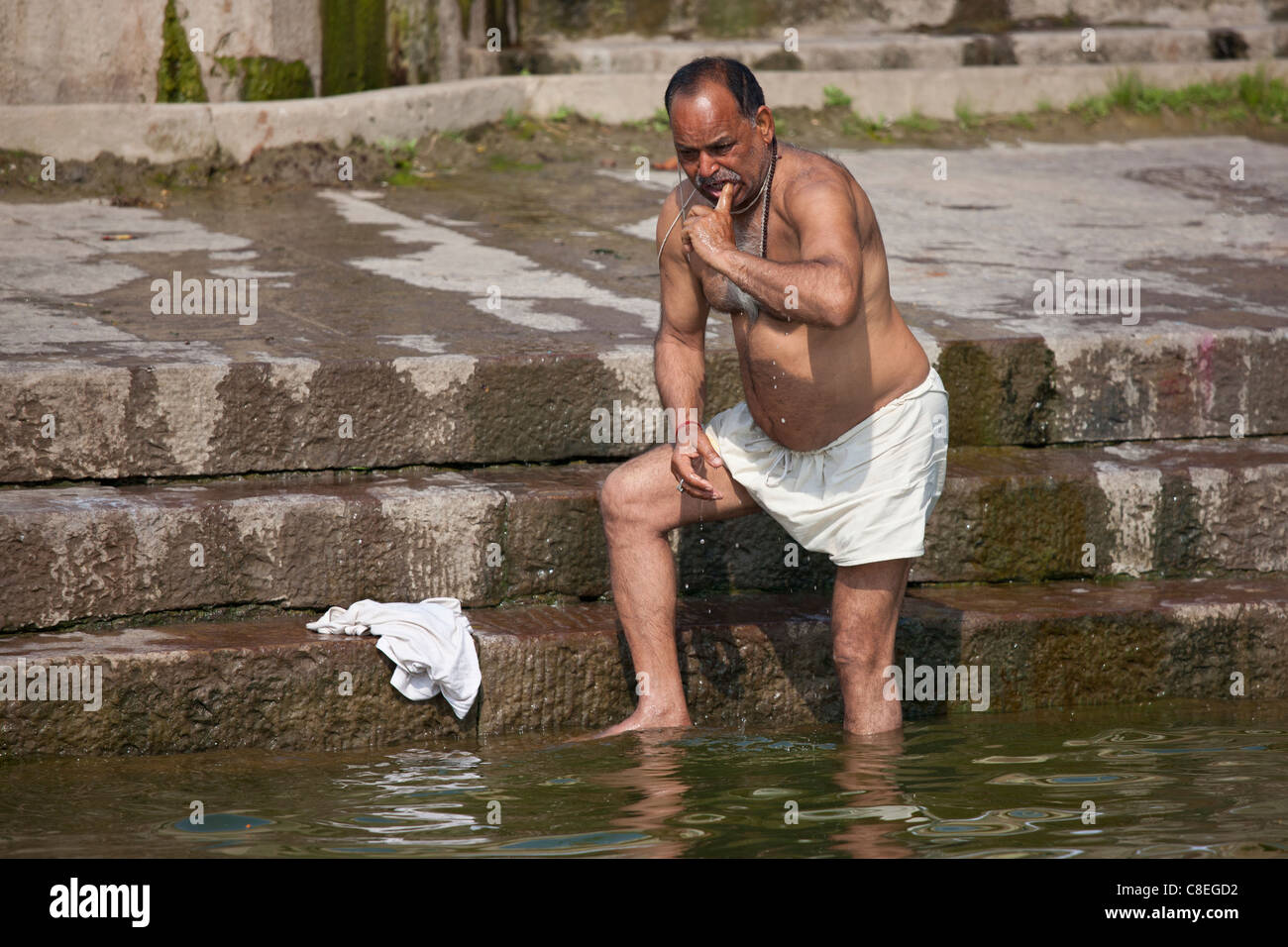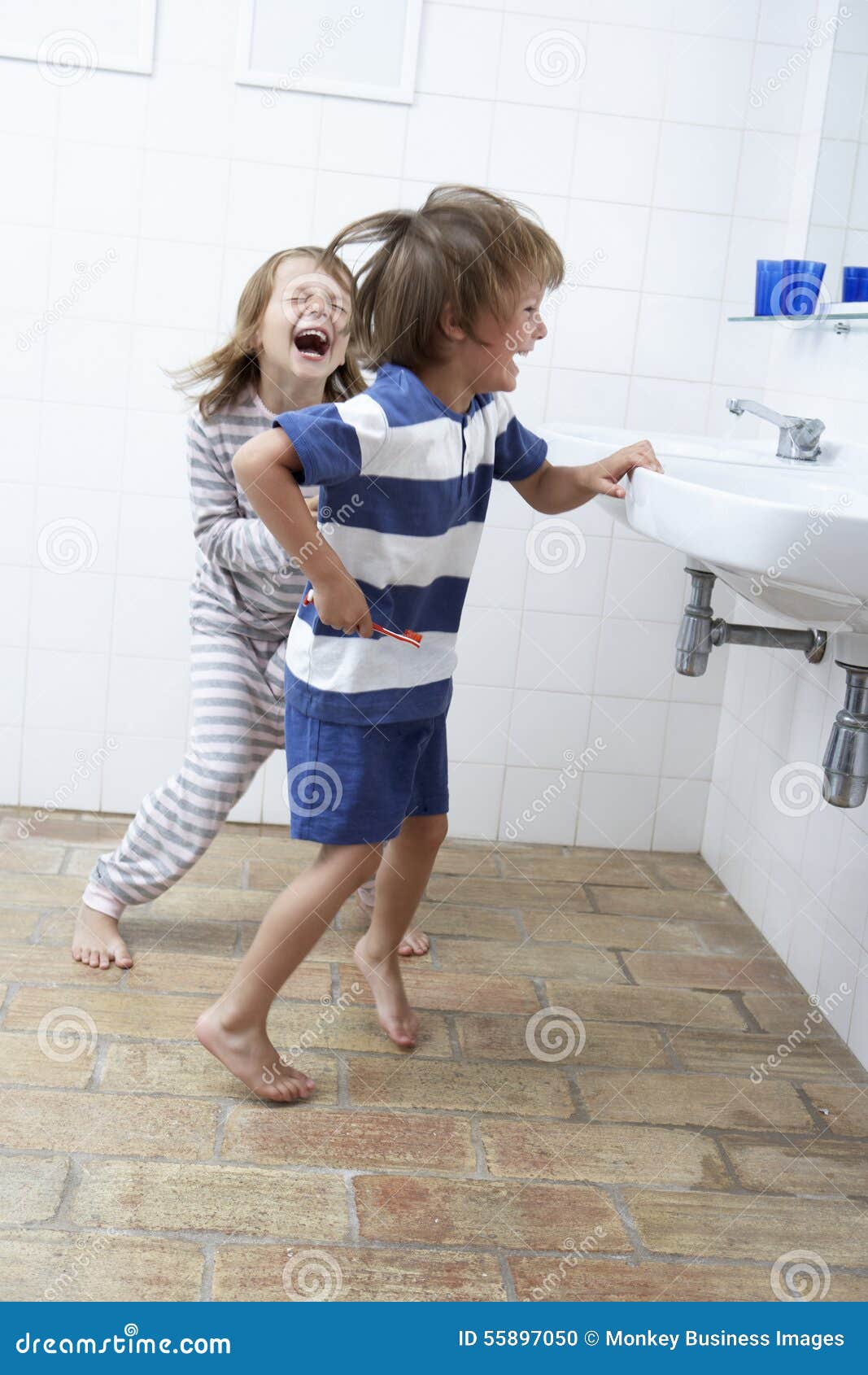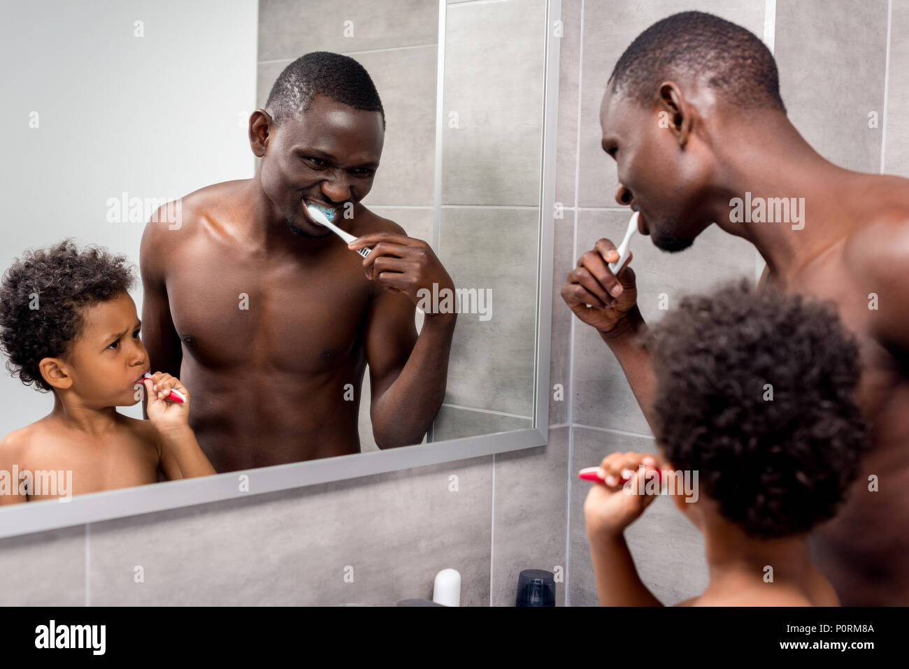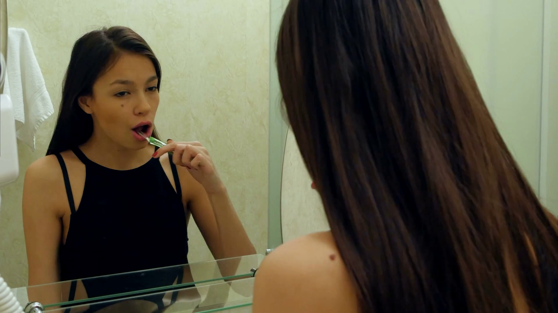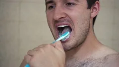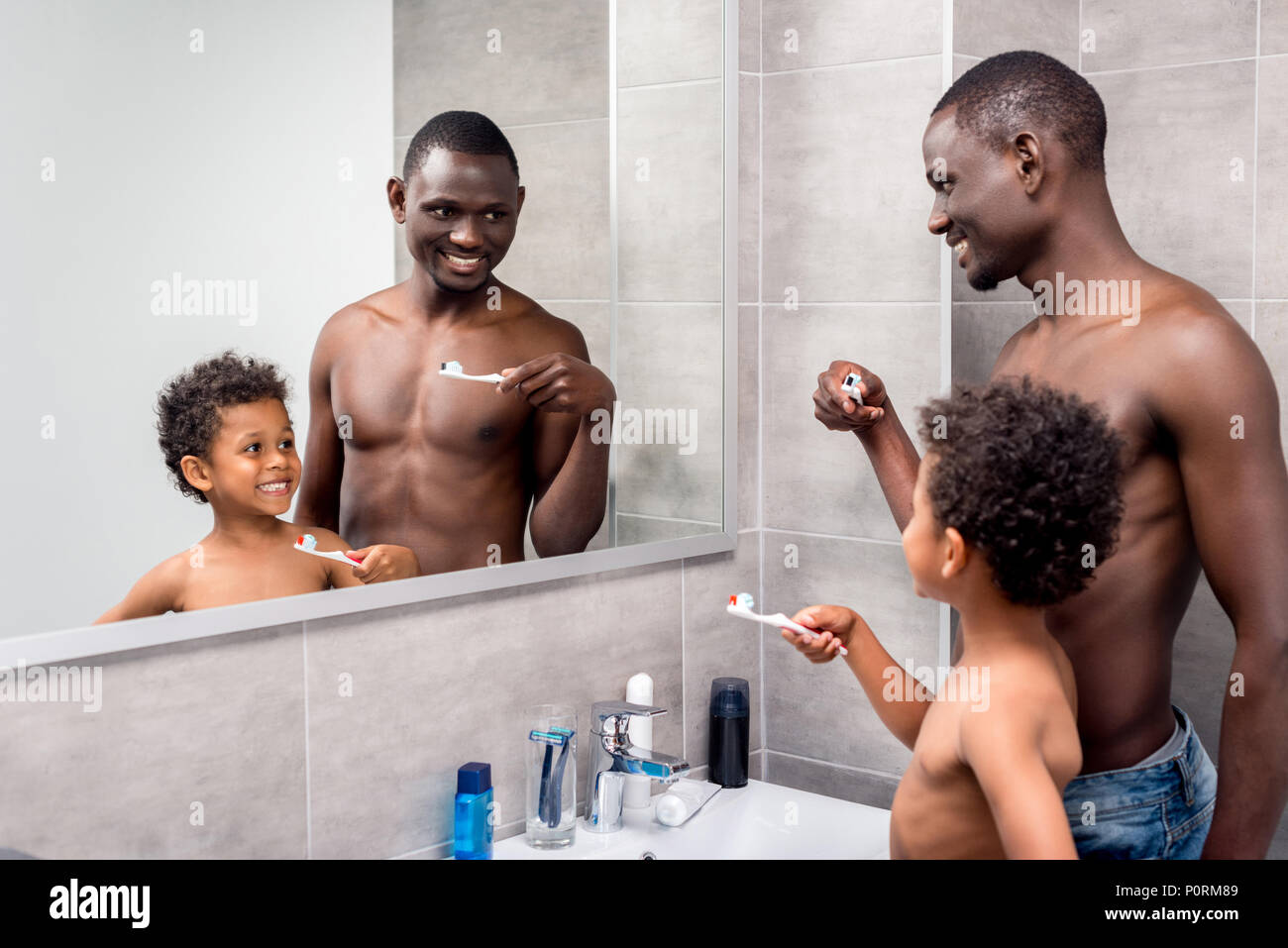 Naked at bathroom brushing teeth