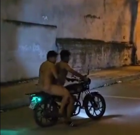 Naked couple on motorcycle