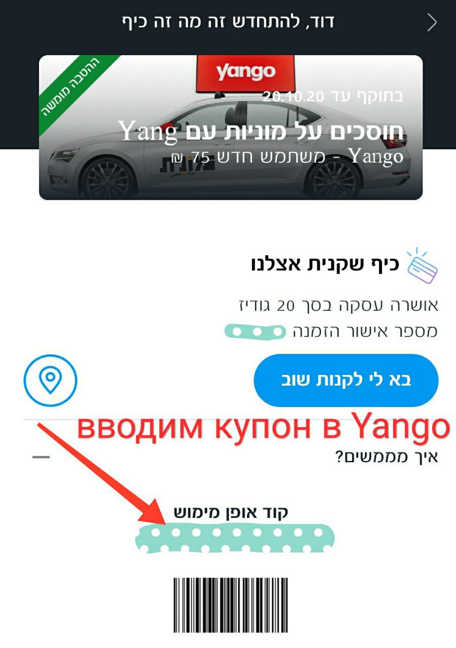 Купон на 50 шек для использования в приложении Cellopark- аналог Pango.