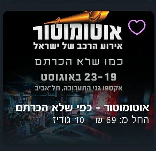 Билеты на выставку авто 19-23 августа в Тель Авиве.