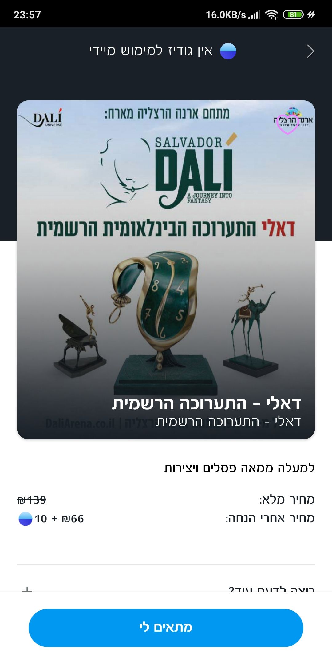 Билет на выставку дополненной реальности Сальвадора Дали 9.07.21-2.10.21 в Герцлии(מתחם ארנה)