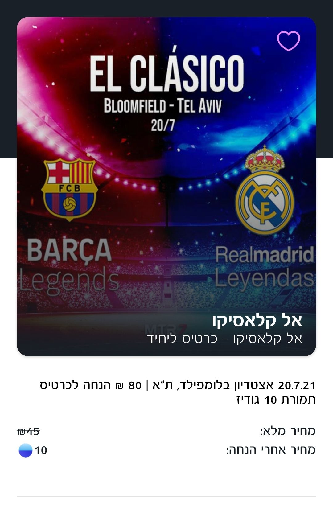 Скидка 80 шек на матч Барселона - Реал Мадрид 20 июля на стадионе Блумфилд в Тель Авиве