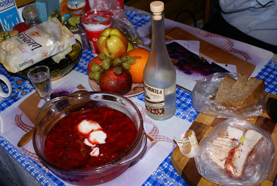 Накрытый стол в бане