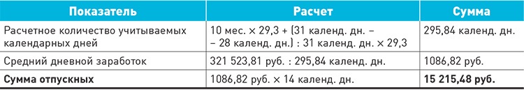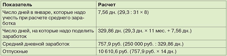 Налог налог расчет отпуска