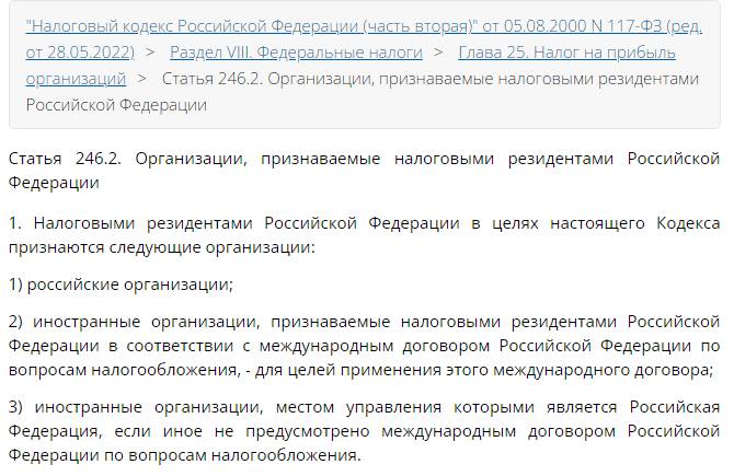 Налоговые резиденты юр лица