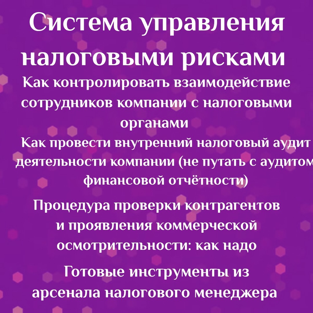 💎 Вы научитесь смотреть на налоговые риски с позиции бизнеса и приносить реальную пользу.