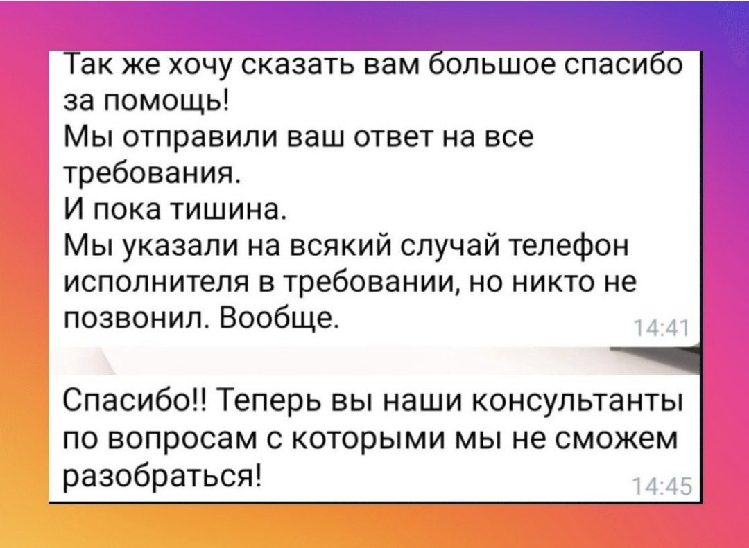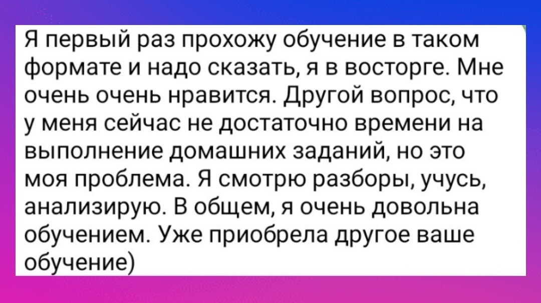 Заходите в группу курса в удобное время - перечитывайте все уроки и забирайте готовые инструменты, когда будет требование, надо проверить договор или просто настало более удачное время.