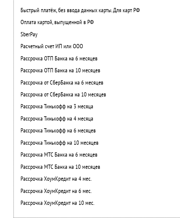 Способы оплаты