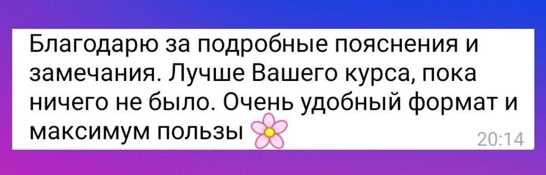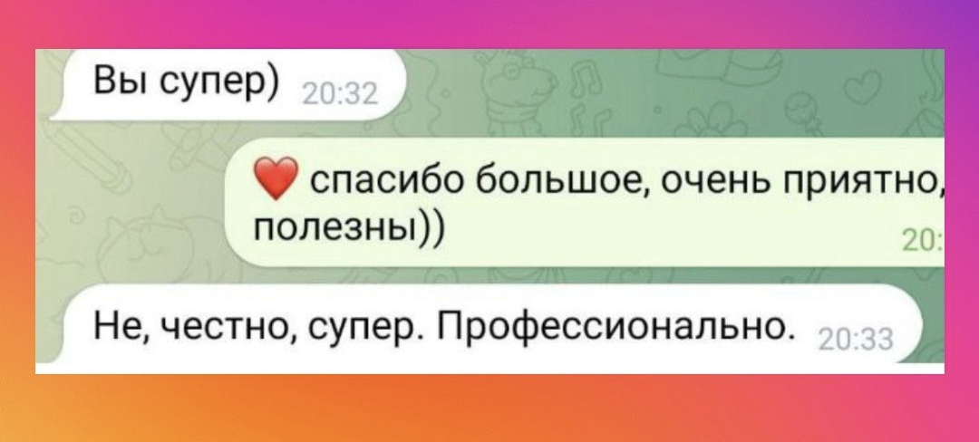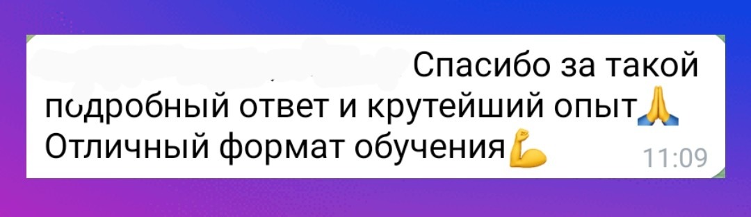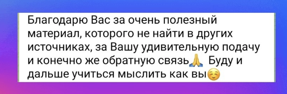 Обмен обратной связью между наставниками и участниками будет происходить в закрытом чате курса и в личной переписке в Телеграм.