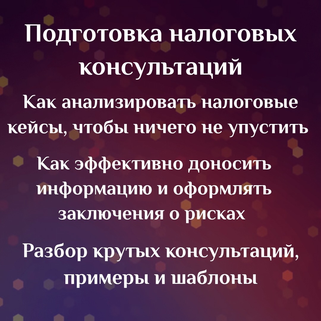 ▪️ Как делать налоговые консультации, которые будут удовлетворять любого клиента независимо от уровня его знаний в области налогообложения,