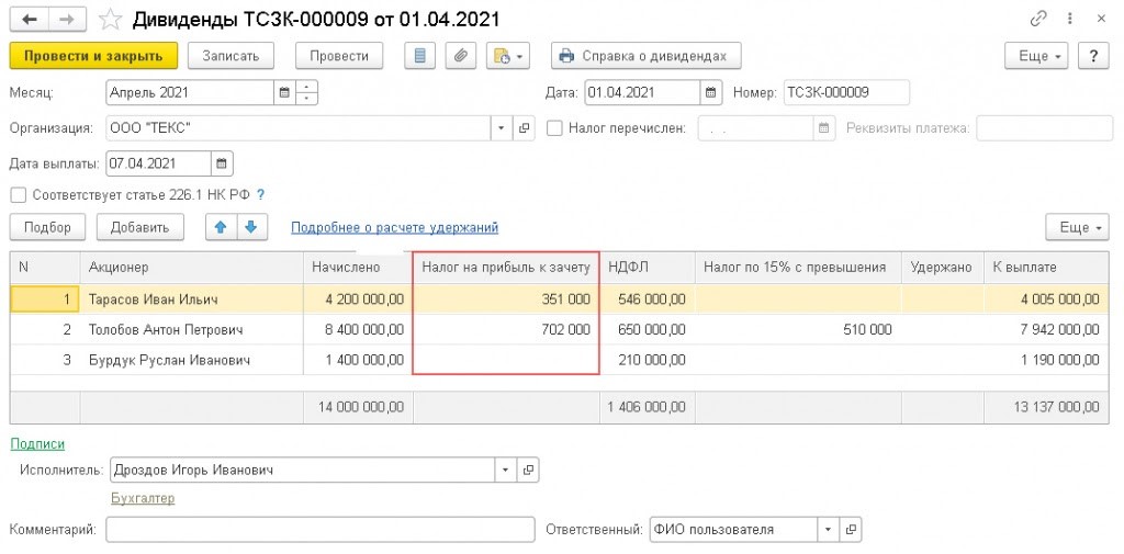 Налоговый агент при выплате дивидендов