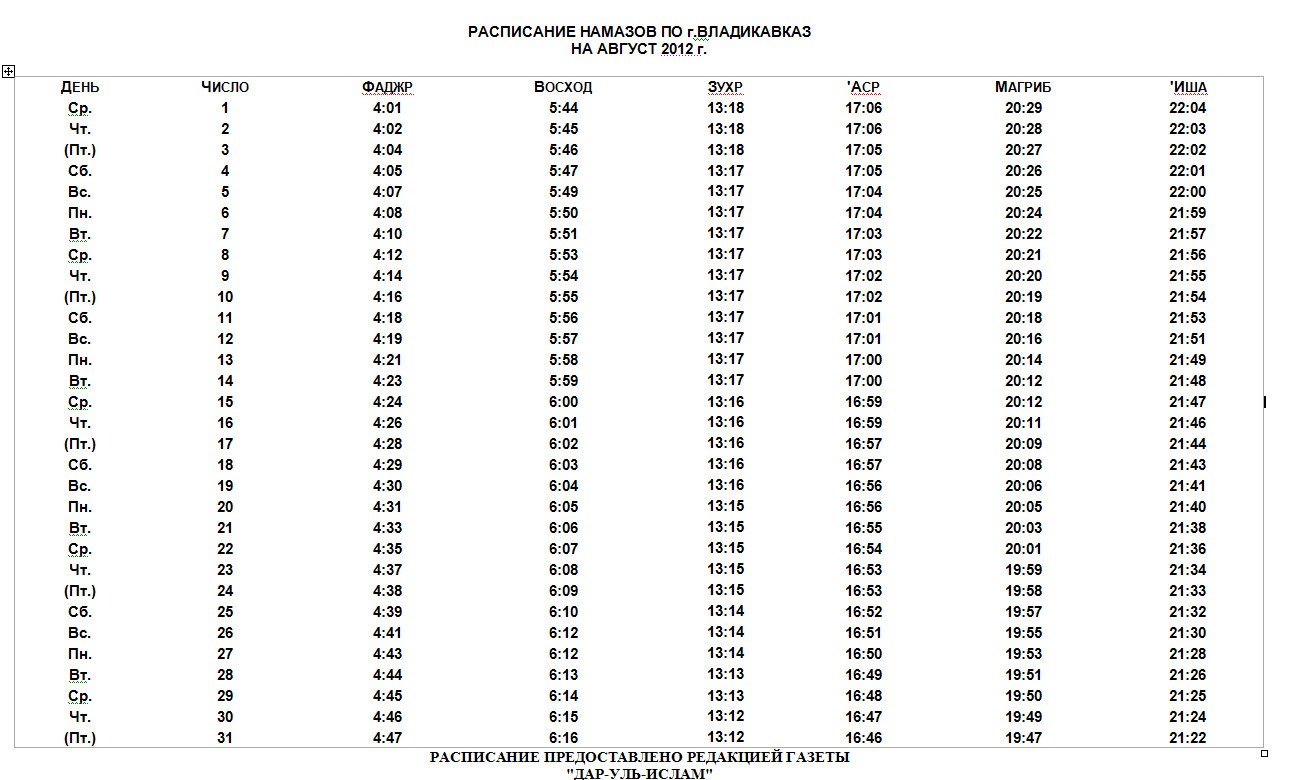 Намаз во владикавказе