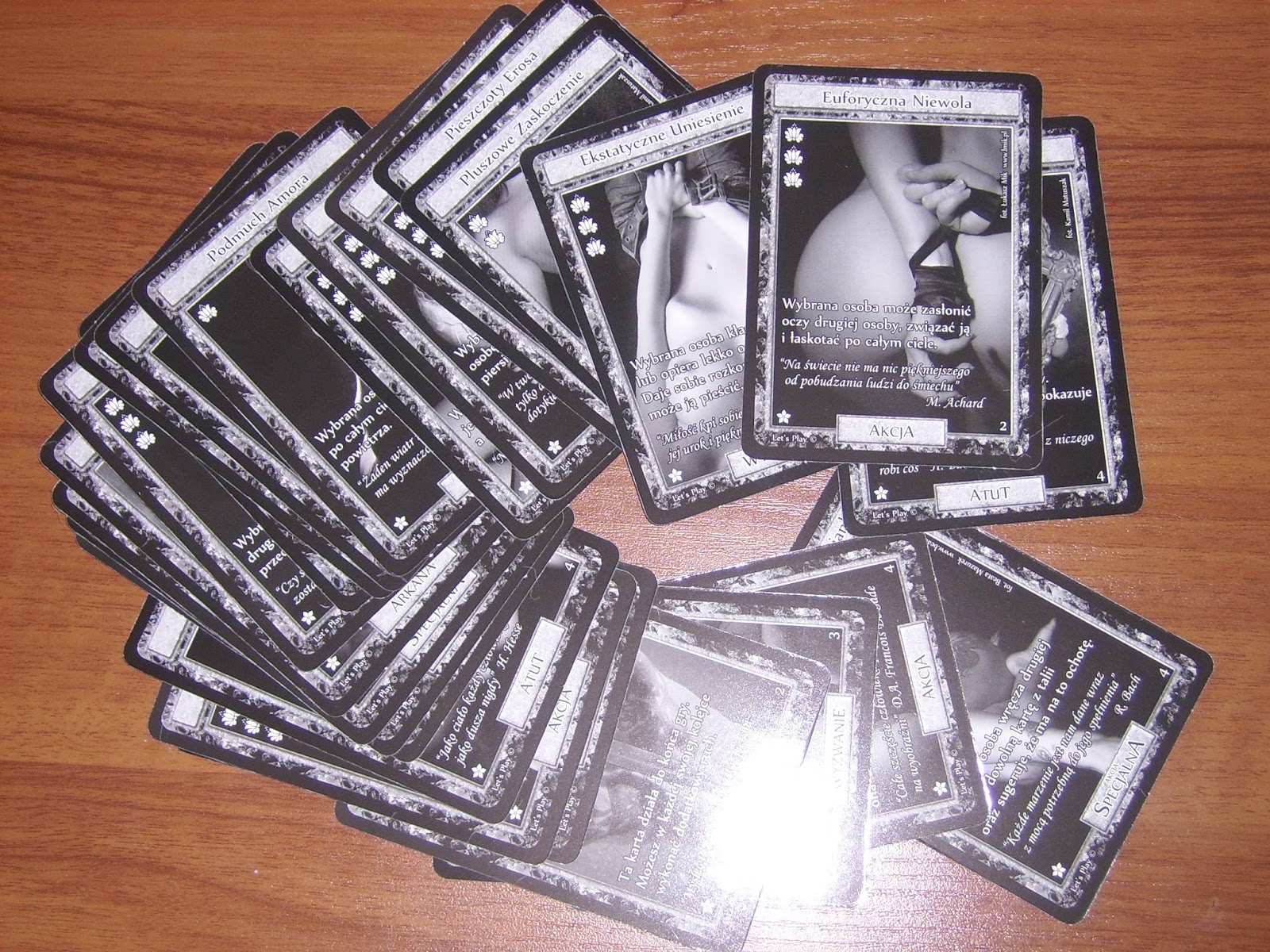 40 zróżnicowanych zadań pierwszego poziomu związanych jest z relacją, bliskością i pieszczotami . Wprowadzą Was w wyjątkowy, zmysłowy nastrój . 40 gorących zadań z drugiego poziomu podaruje Wam namiętne i podniecające wyzwania . Sprawią, że Wasze ciała i umysły będą krzyczeć o więcej… . Wylosuj wirtualną kartę i wkrocz do . . .