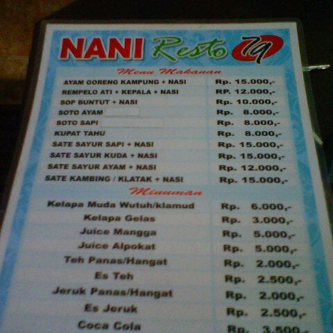 Нани ресторан меню
