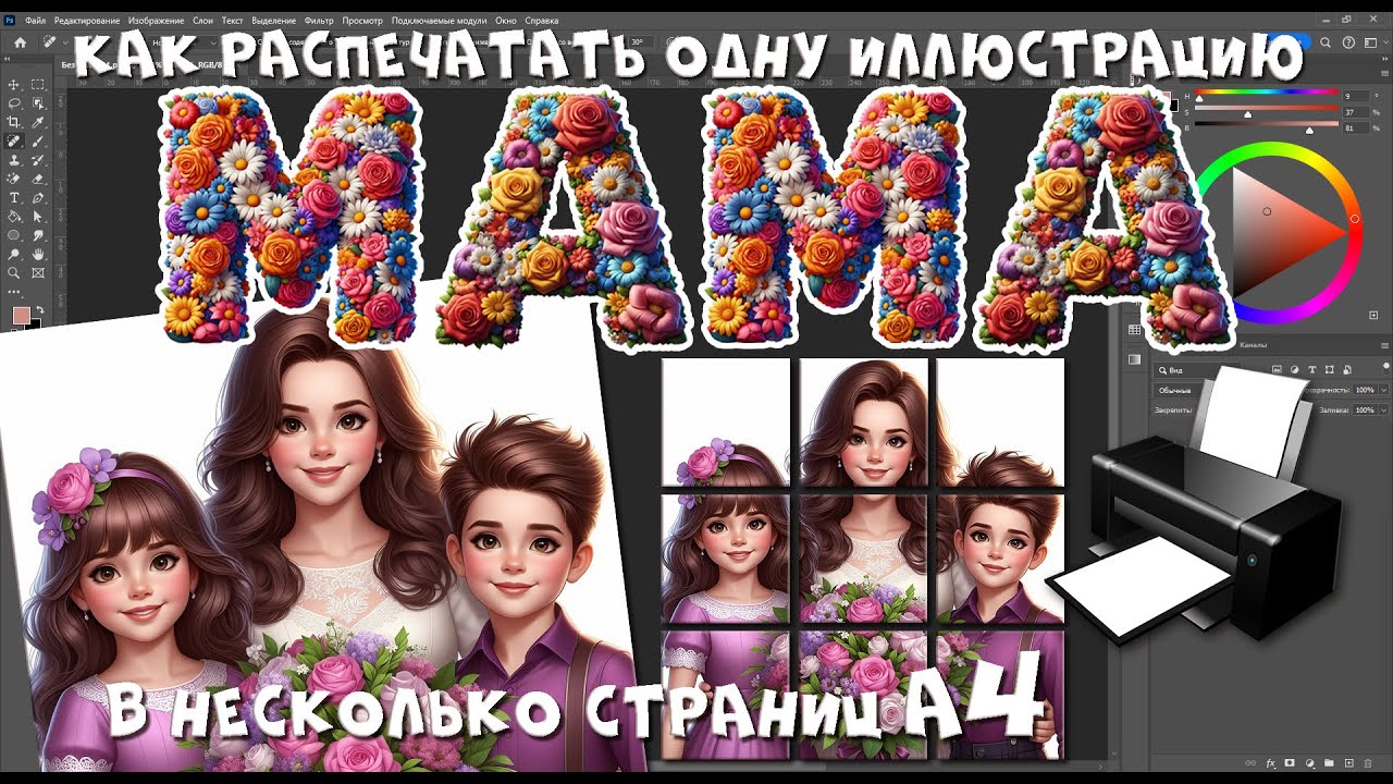 Напечатать картинку на 2 листа 115 фотографий