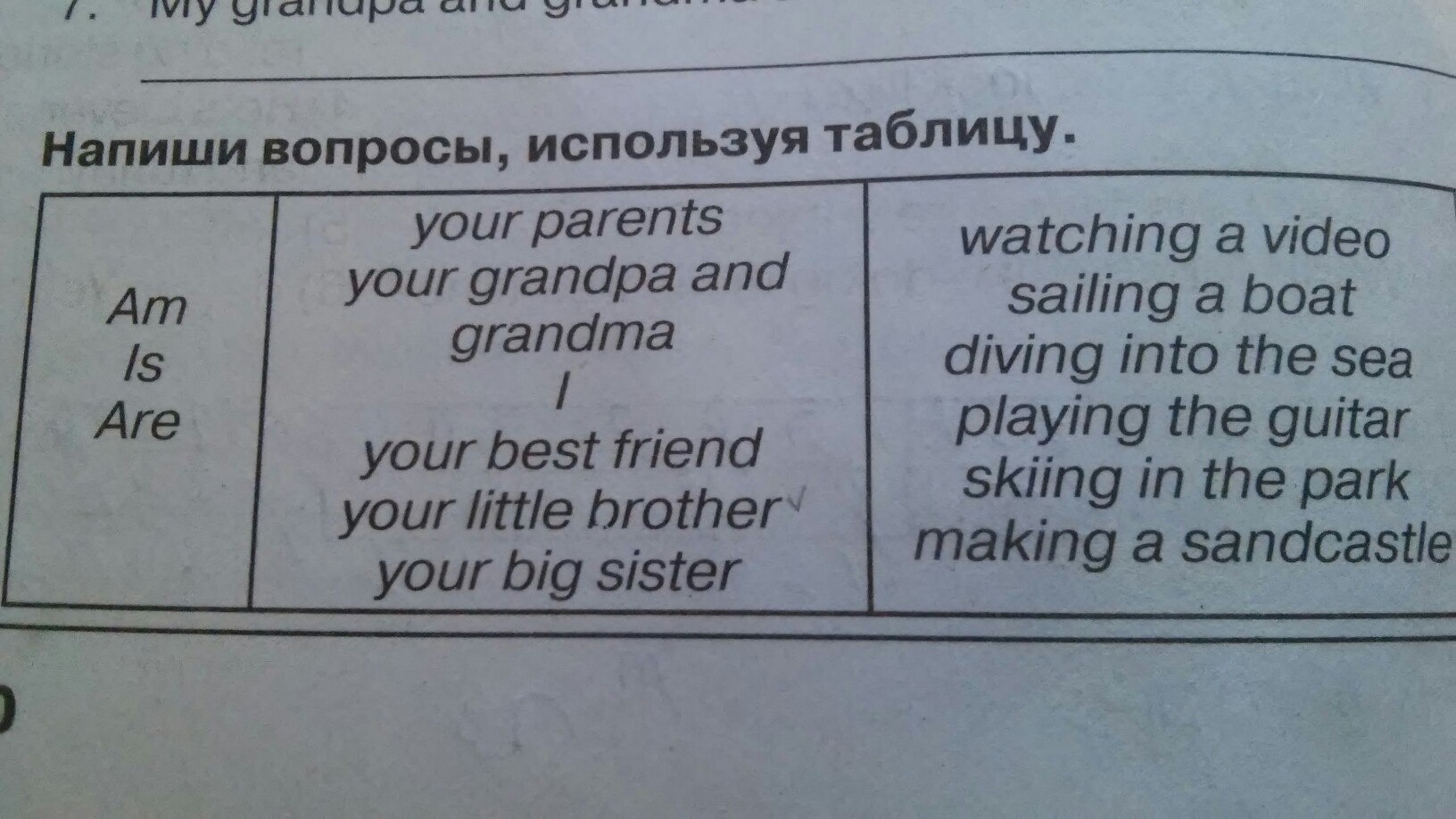 Напиши вопросы используя таблицу