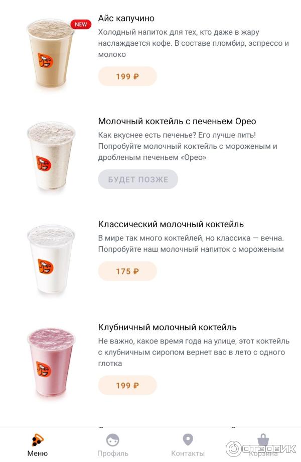 Напитки в додо пицца