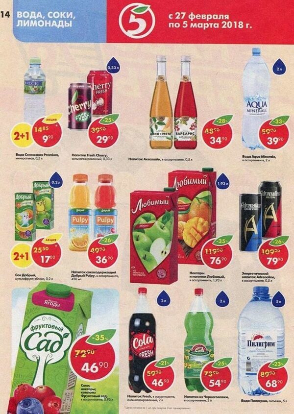 Напитки в магазине пятерочка