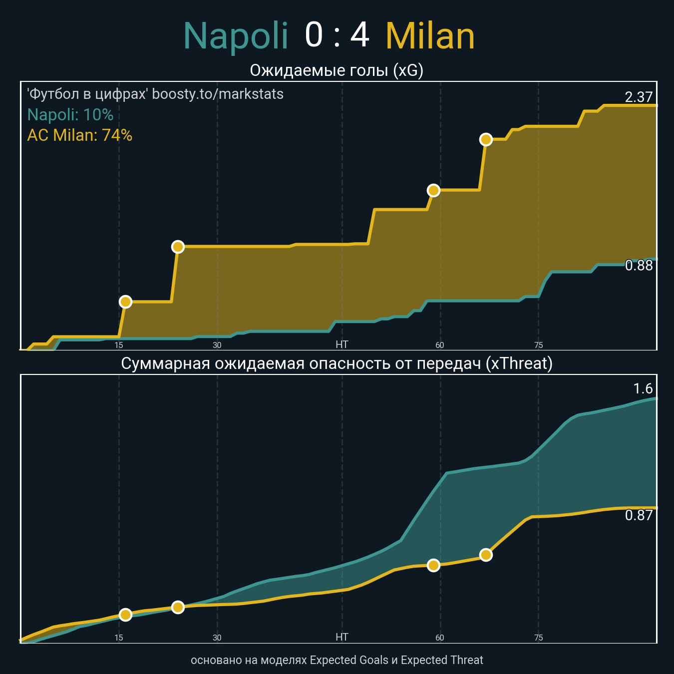Ожидаемые голы (NPxG): 0.88 - 2.37