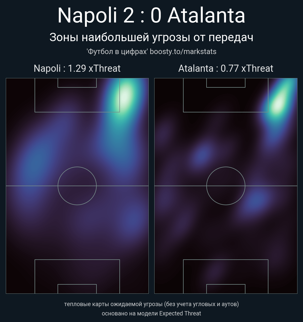 xThreat без учета угловых: 1.29 - 0.77