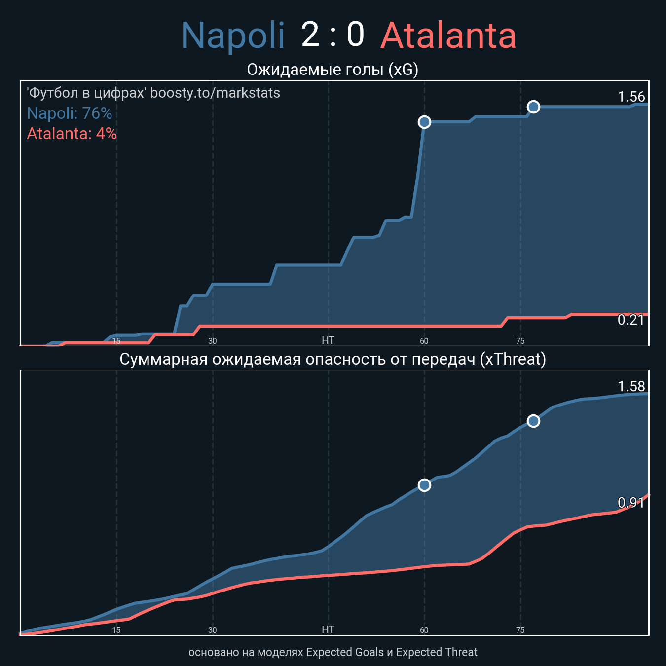 Ожидаемые голы (NPxG): 1.56 - 0.21