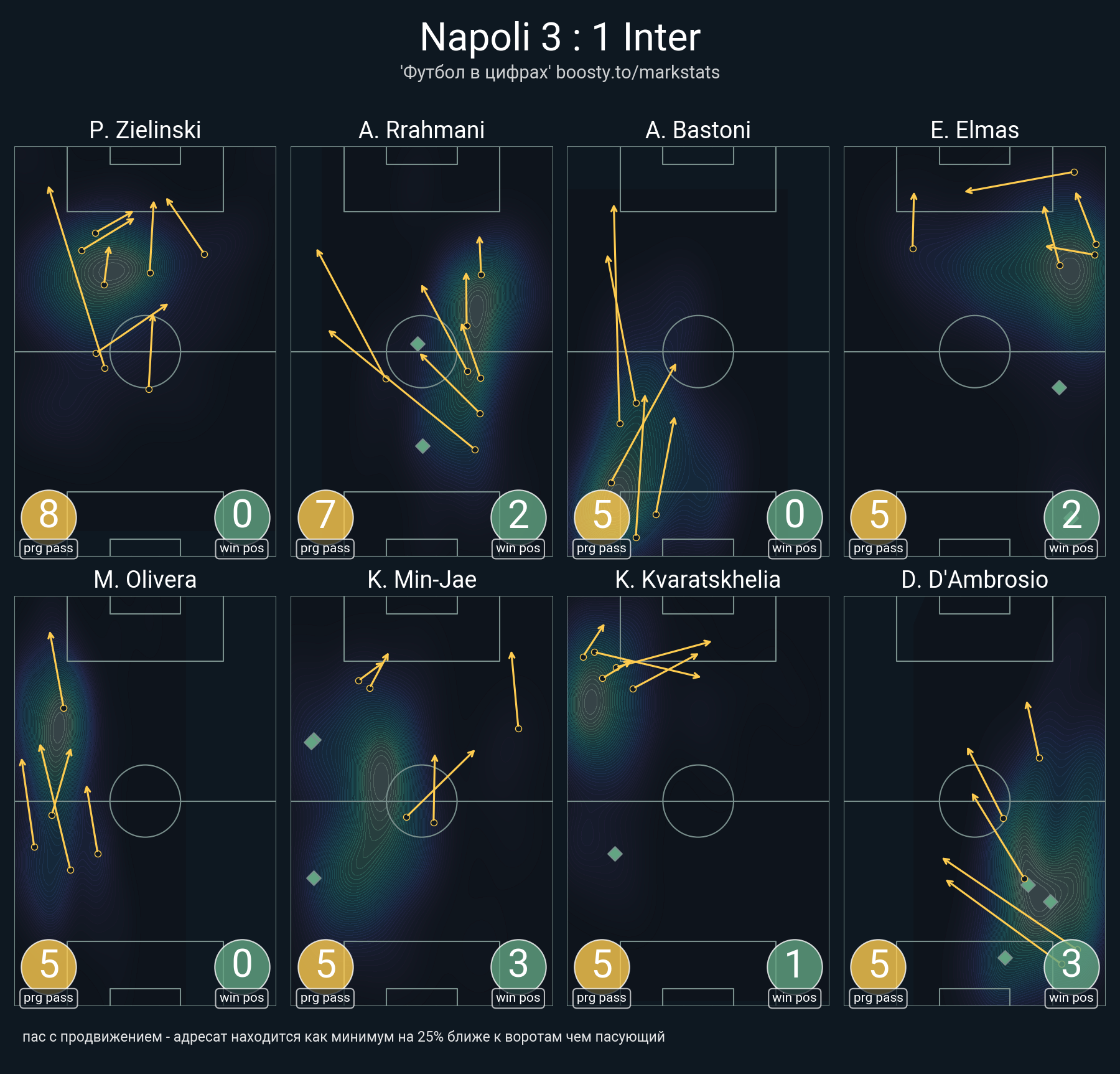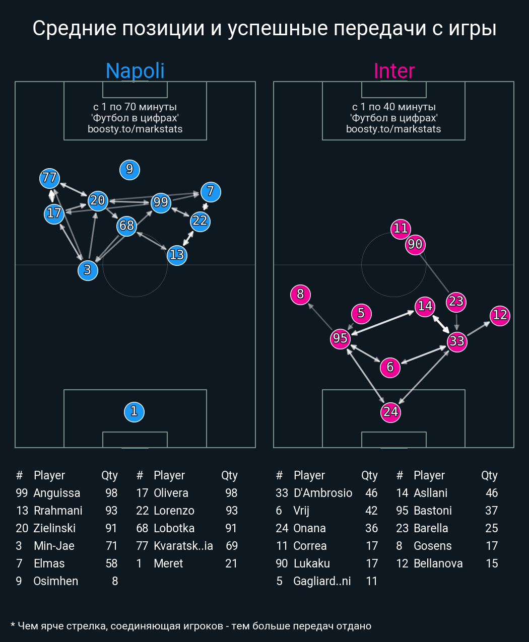 69 успешных передач из 71 попыток (5 с продвижением, 14 на трети соперника)