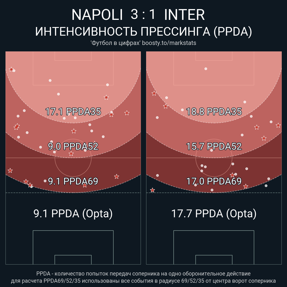 PPDA (Opta): 9.1 - 17.7