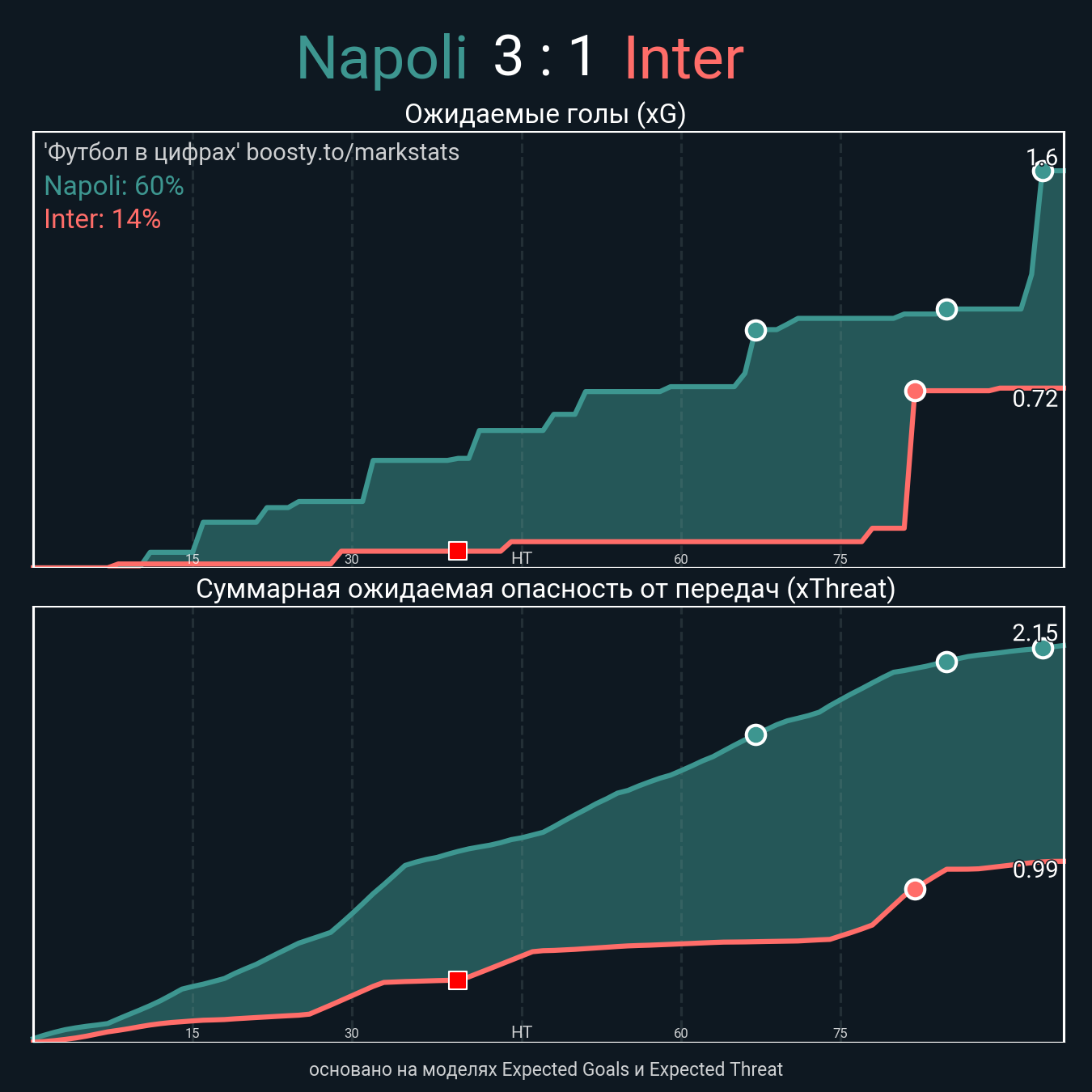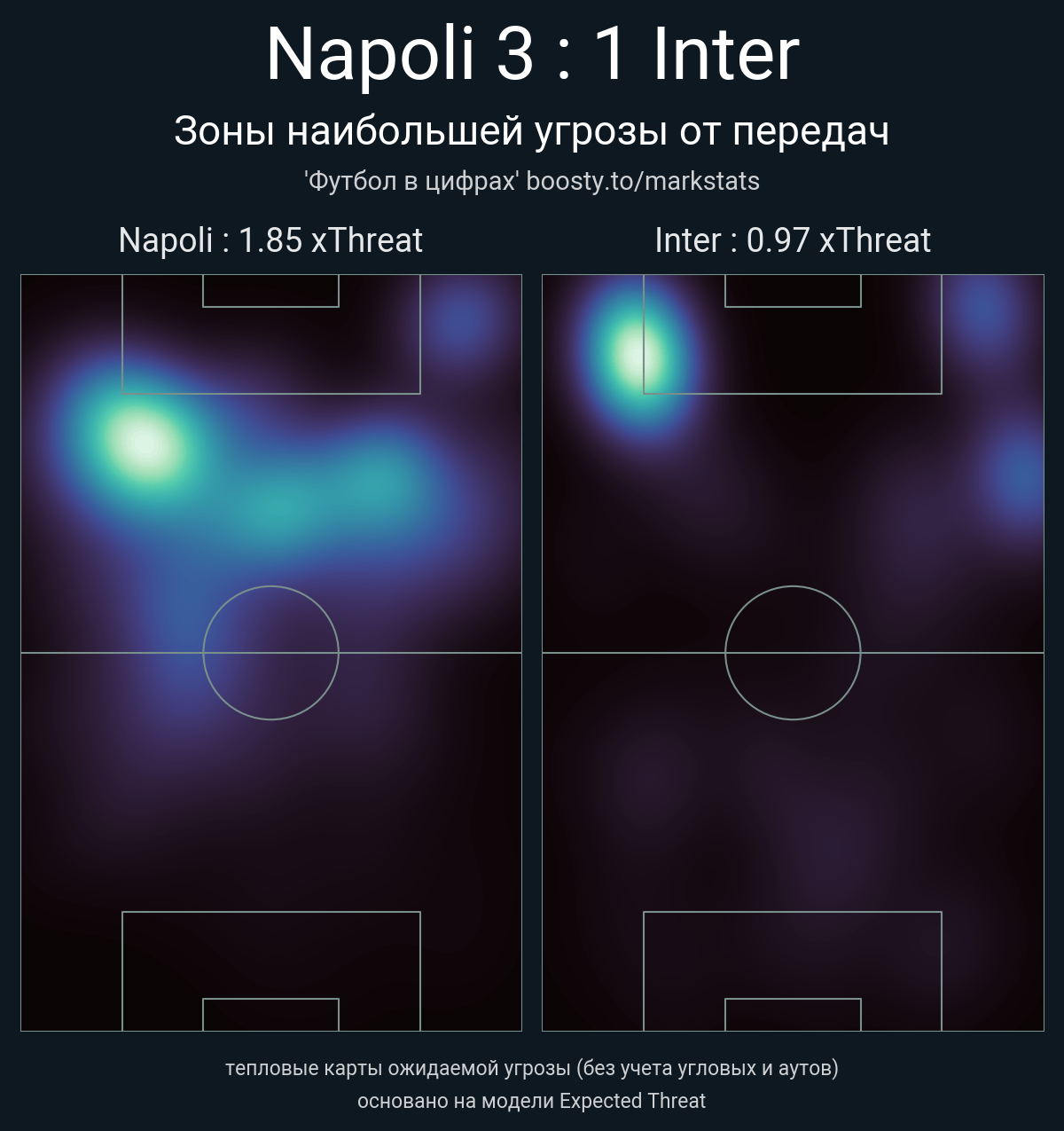 xThreat без учета угловых: 1.85 - 0.97