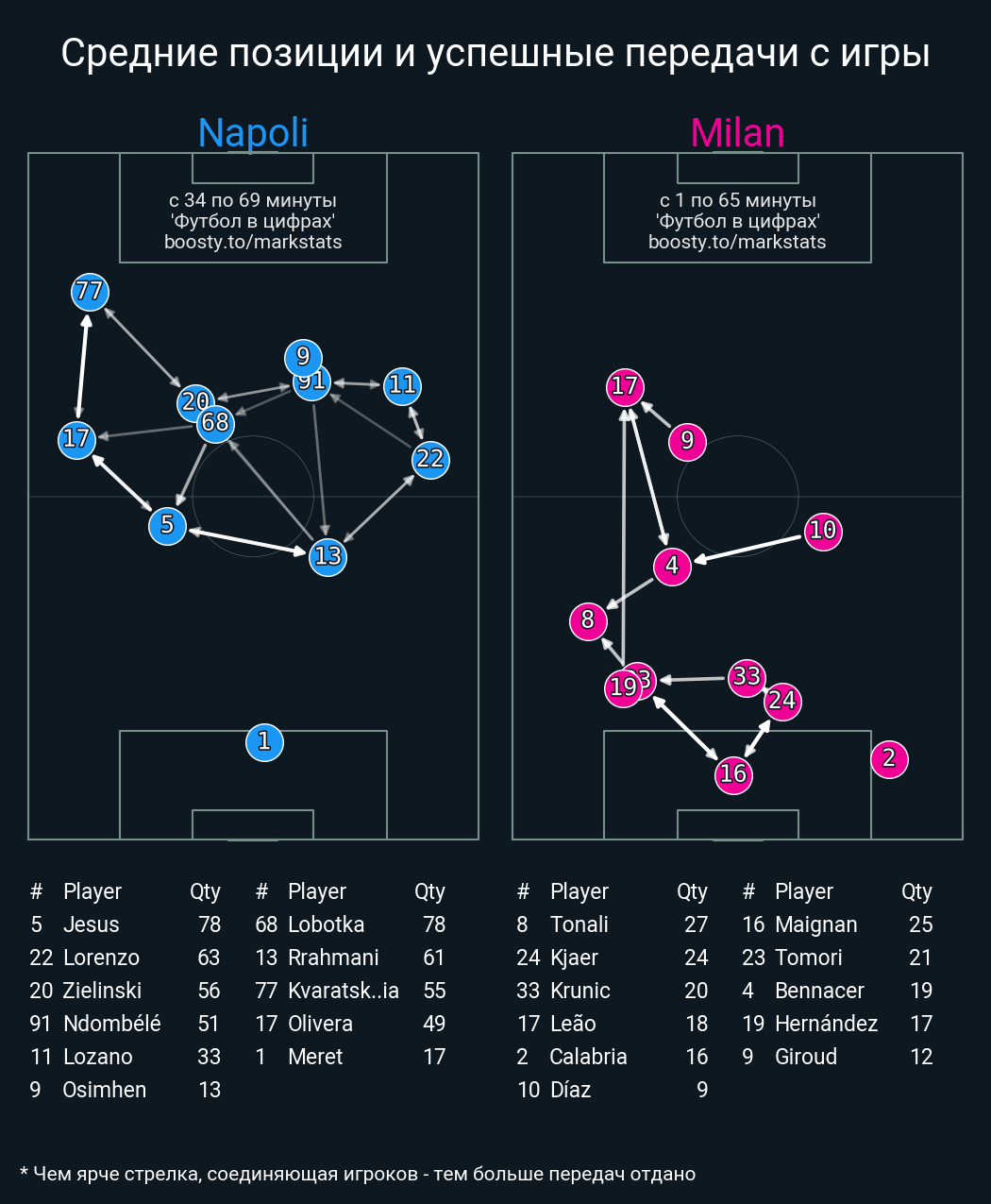 51 успешных передач из 66 попыток (4 под удар, 6 с продвижением, 12 на трети соперника)