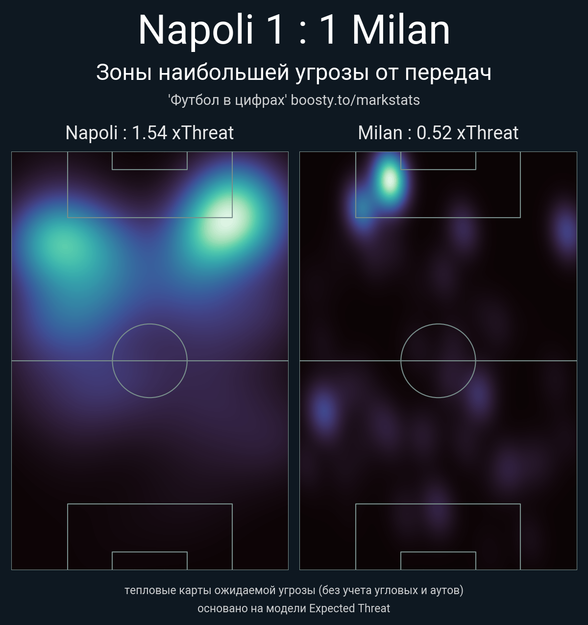 xThreat без учета угловых: 1.54 - 0.52