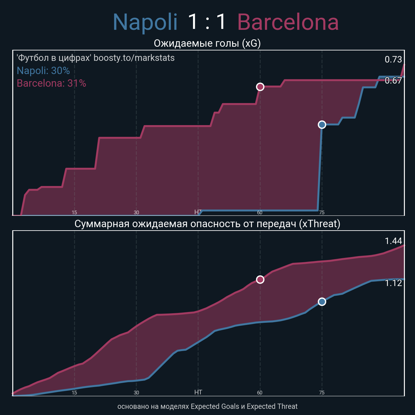 Ожидаемые голы (NPxG): 0.67 - 0.73