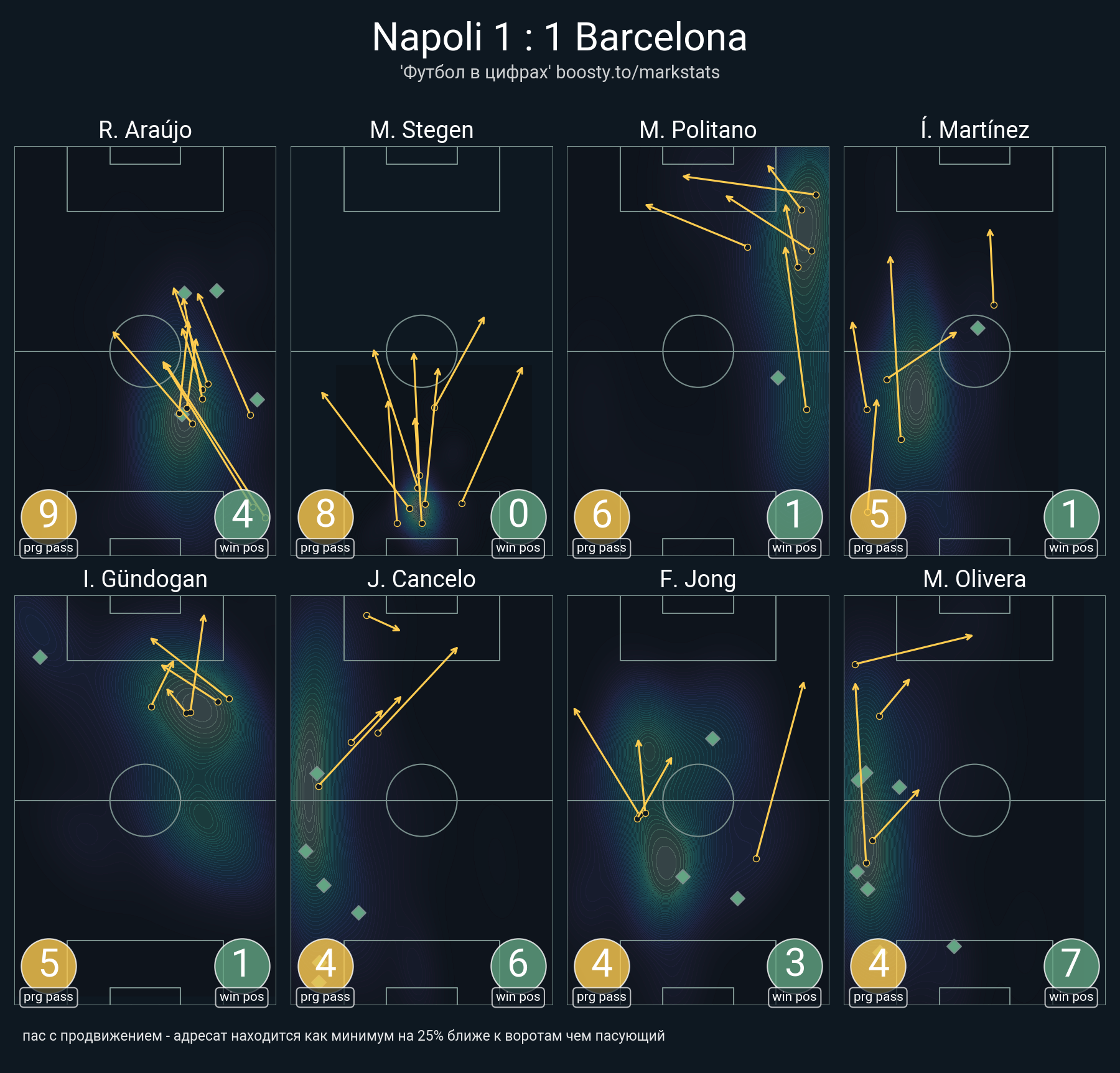 33 успешных передач из 42 попыток (2 под удар, 5 с продвижением, 15 на трети соперника)