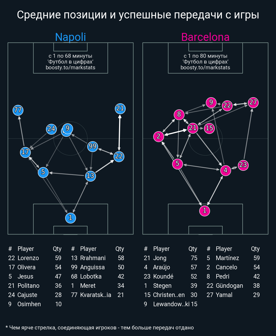 50 успешных передач из 60 попыток (1 под удар, 4 с продвижением, 8 на трети соперника)