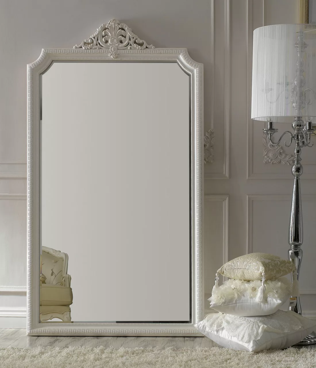 Напольное зеркало - фото интерьера спальни, гостиной . . .
