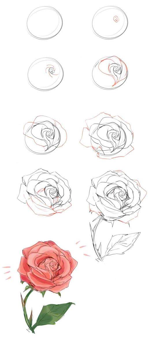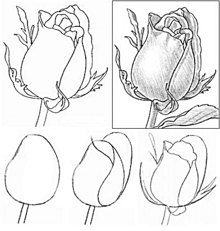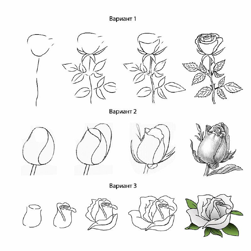 Нарисовать Картинки Розу Поэтапно