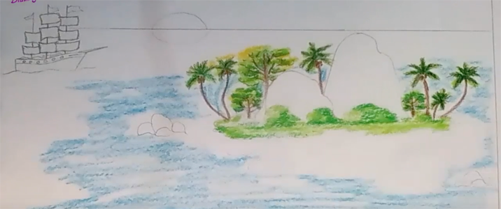 Нарисовать рисунок весенний остров