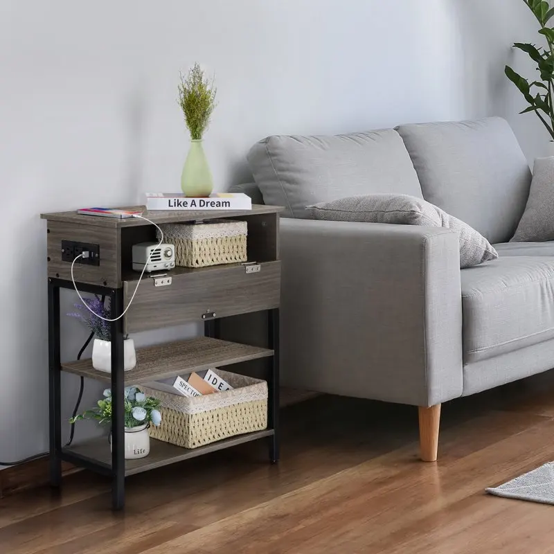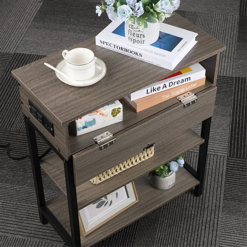 wiLKgjMQfHere you can buy Narrow End Table with Charging Station Sofa Side Table with Storage Shelf, Power Outlets & USB Ports Small Nightstand Table for with free delivery to your post office.