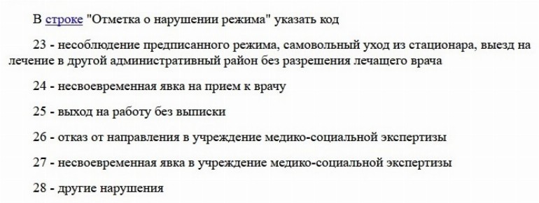 Нарушение больничного листа код 24