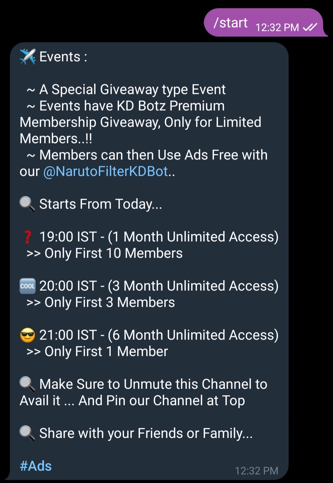 Naruto Bot Ads PreviewKD BotzThis is how it looks like in botYour message after clicking on the ad link