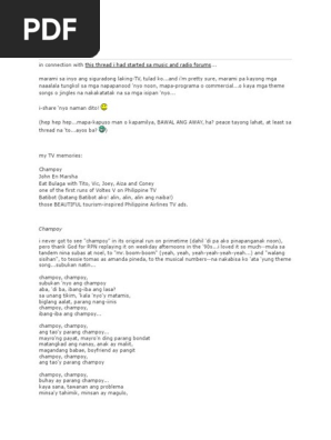 " Nasaan Ang Dating Tayo"Lyrics by : RJ Nuevas & Tata BetitaMusic by : Tata BetitaArranged by : Sherwin CastilloPerformed by : Julie Anne San JoseTayo ay masaya p . . .