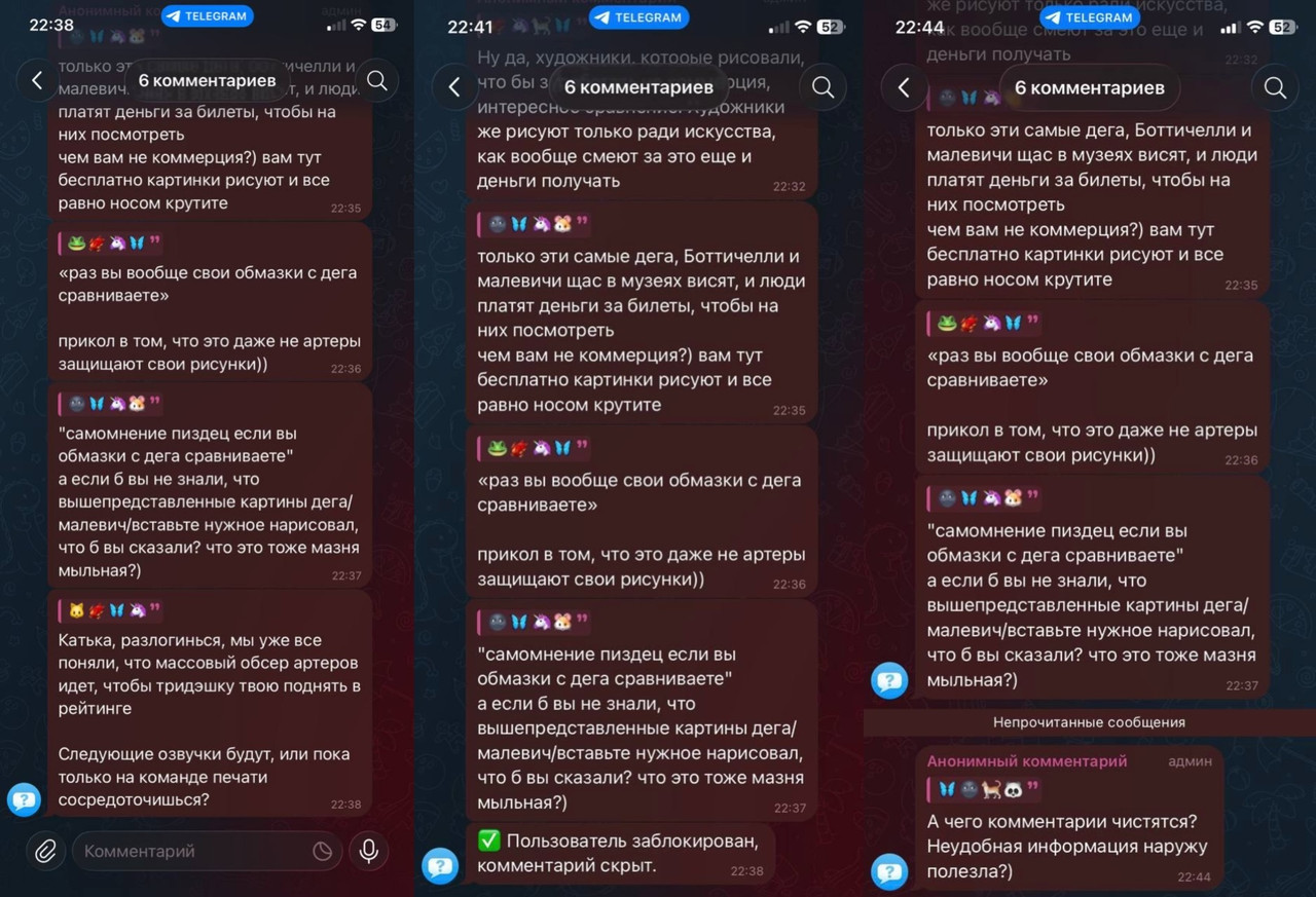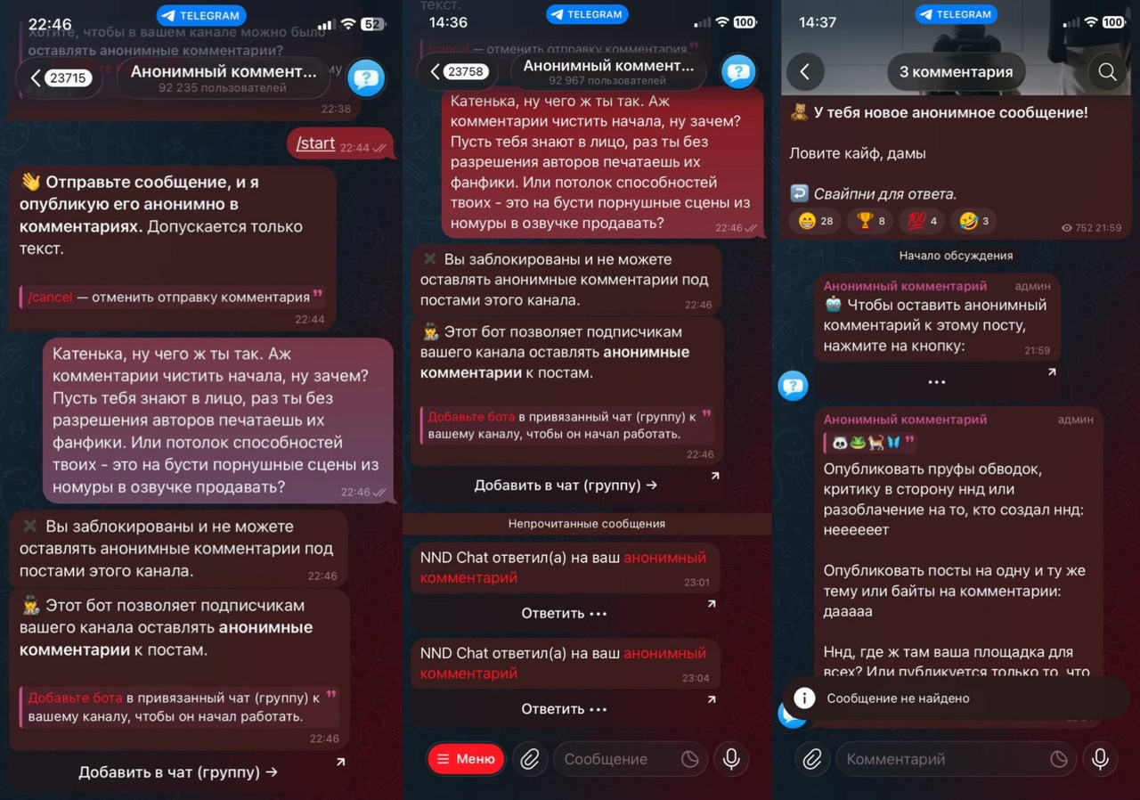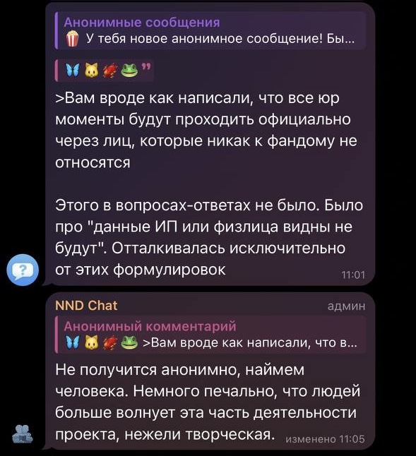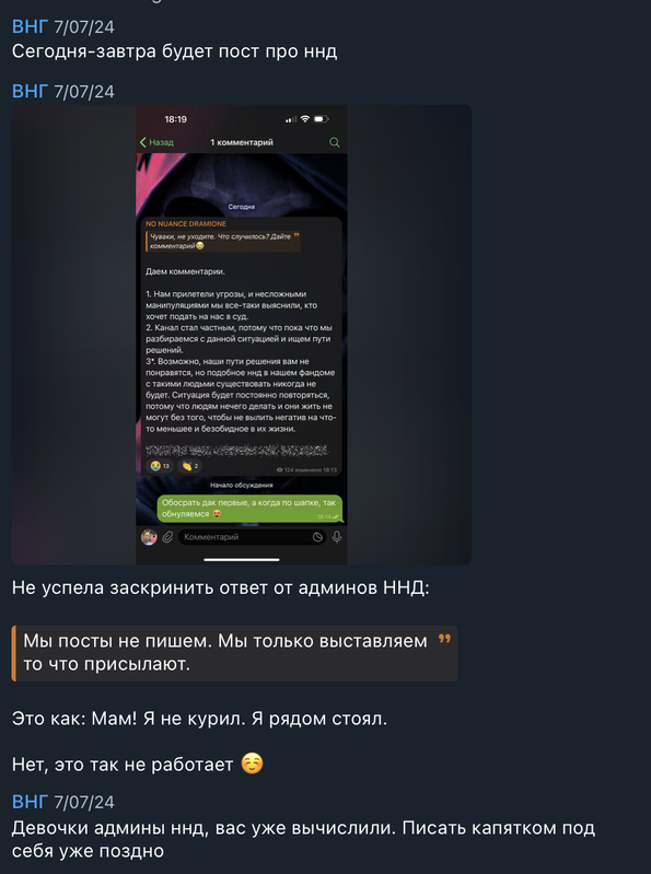 Соединив эти пару ниточек, один из пользователей поставил себе никнейм “Катька ННД” и оставил комментарий под постом в паблике – комментарий тут же снесли и аккаунт кинули в блок. И далее пошла чистка всех комментариев, где говорилось о том, что за ННД стоит Катя из Yunna Fanfiction.
