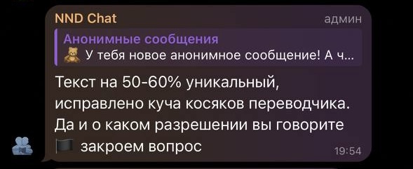 Вы автор мало-мальски популярного фанфика? Или вы художник, арты которого кочуют на заставки? Возможно, вы переводчик, который несколько месяцев трудился над текстом? В любой момент бездарные алчные ручонки владелицы ННД потянутся к чему-то, чего она сама создать не в состоянии, сделав приписку о том, что от исправления пары опечаток текст стал на 60% уникальным. Интересно, а сколько процентов добавляет исправление ё на е? Пойду пару слов в ГП заменю – издам как свое.